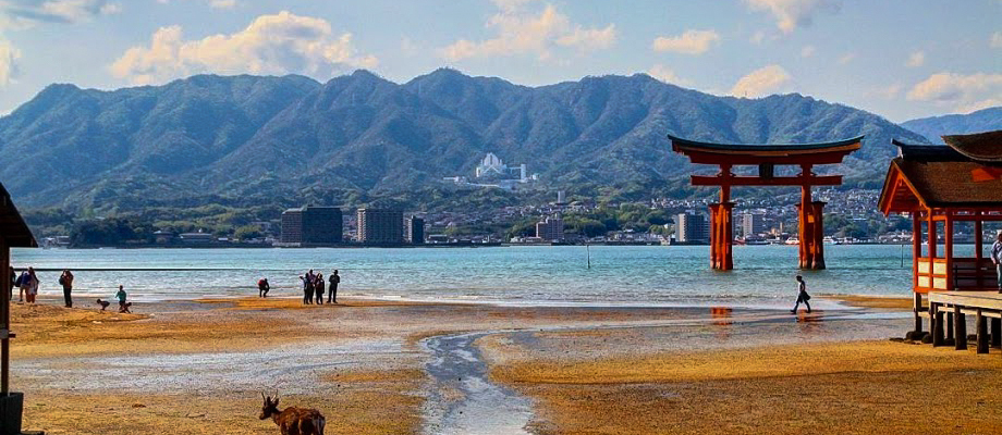 Just a short ferry ride from mainland Hiroshima is the island of Miyajima, famous the world over as Japan’s Shrine Island. Covering an area of 30 square kilometers in Hiroshima Bay, Miyajima is best known as the home of the Itsukushima Shrine, a Shinto temple dedicated to the Princess daughters of the wind god Susanoo. Dating from the eighth century, the majority of the shrine’s buildings rise out of the waters of a small bay supported only by piles. The effect at high tide is simply stunning, making these structures – including the famous Great Floating Gate (O-Torii) – appear as if they’re floating on water. Linked together by walkways and bridges, it’s a fascinating place to explore, in particular its larger halls such as the exquisite Honden (Main Hall), the Offerings Hall (Heiden), the Prayer Hall (Haiden), and the Hall of a Thousand Mats (Senjokaku). Another notable feature is the shrine’s stage where visitors are entertained with traditional dances and musical performances. Also worth exploring are the island’s exquisite grounds and gardens, home to wild deer and numerous bird colonies.