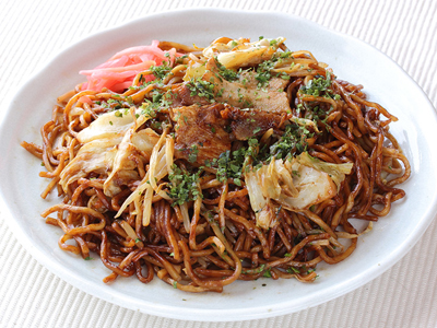 It is virtually impossible to attend a summer festival in Japan and not come across a yakisoba stand. Yakisoba is a fried noodle dish made by barbecuing or stir-frying a combination of noodles, sliced cabbage, pork, carrot and other vegetables, and a barbecue style yakisoba sauce. During the summer festivals large piles of these ingredients are thrown onto an outdoor hotplate and barbecued, but yakisoba can also easily be made at home using a large frying pan or wok. ‘Yakisoba’ means ‘cooked soba’, but unlike other soba noodles, the noodles used in yakisoba do not contain any buckwheat.